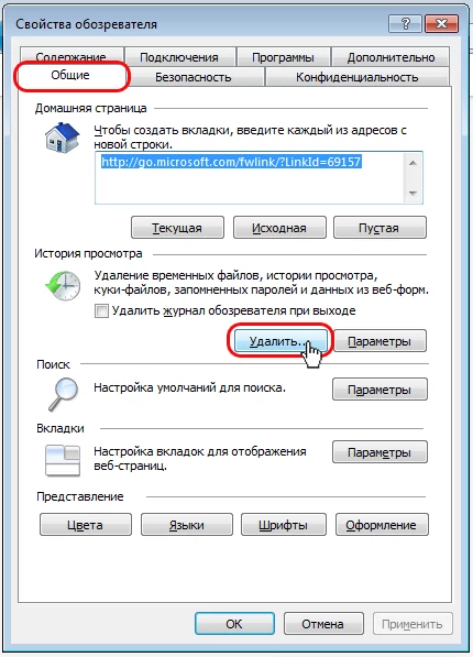 Чтобы удалить временные файлы браузера Internet Explorer