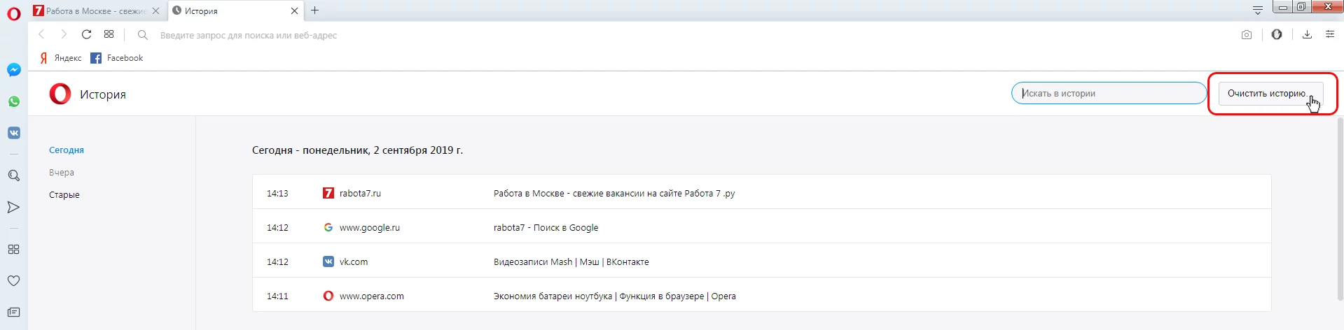 3. Нажмите кнопку "Очистить историю"