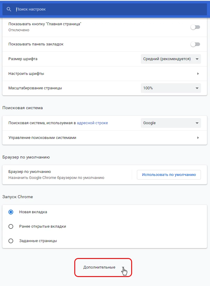 3. В нижней части окна нажмите на "Дополнительные"