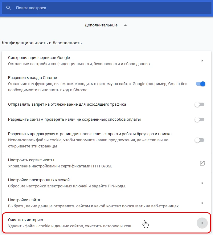 4. В разделе "Конфиденциальность и безопасность" нажмите кнопку "Очистить историю"