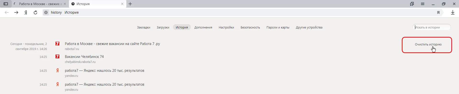 6. Нажмите "Очистить историю"
